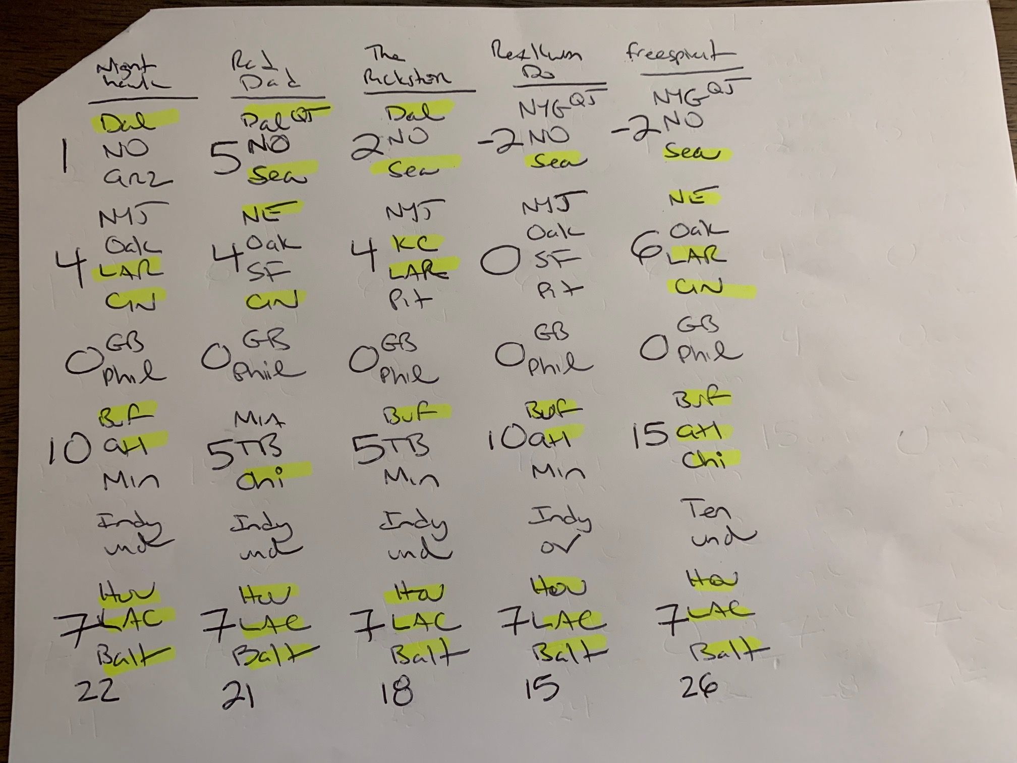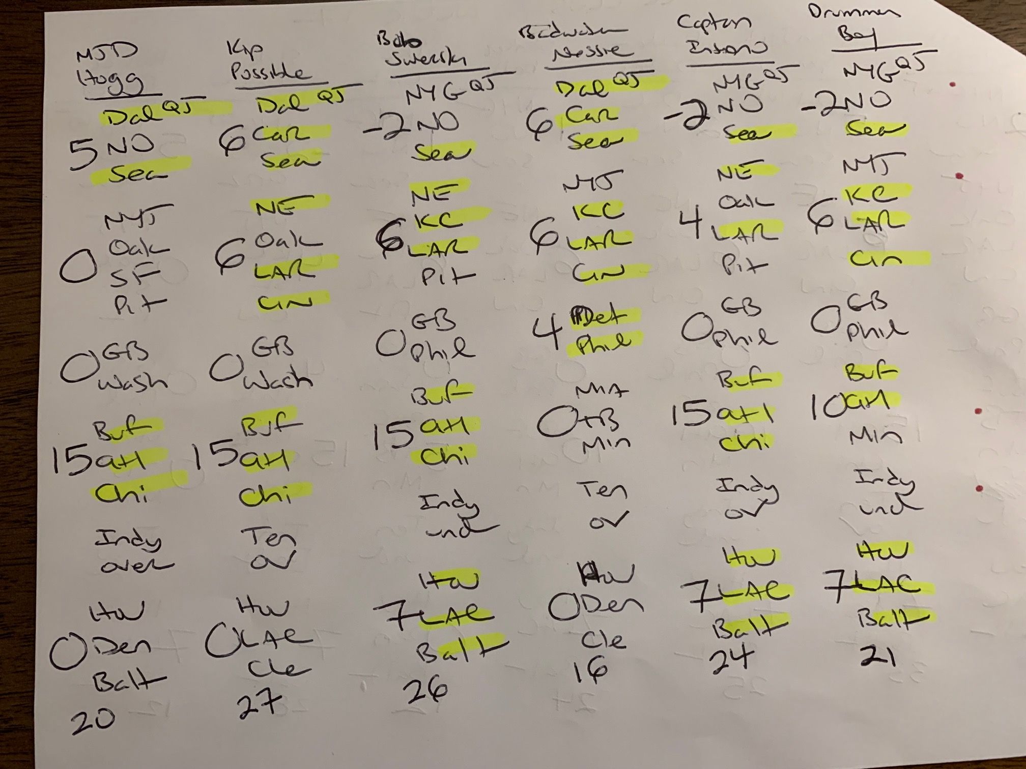 Here are my picks for the final week of the season and 2018 Football Club: NYG QJ, NO, Sea, NYJ, Oak, LAR, Cin, GB, Phil, Buf, TB, Min, Indy under, Hou, LAC, Balt.  It’s been a great season and maybe a miracle will happen and I will have an MVP caliber week.  *Note switched over to Indy on Sunday afternoon because Mariota is not going to be starting tonight.