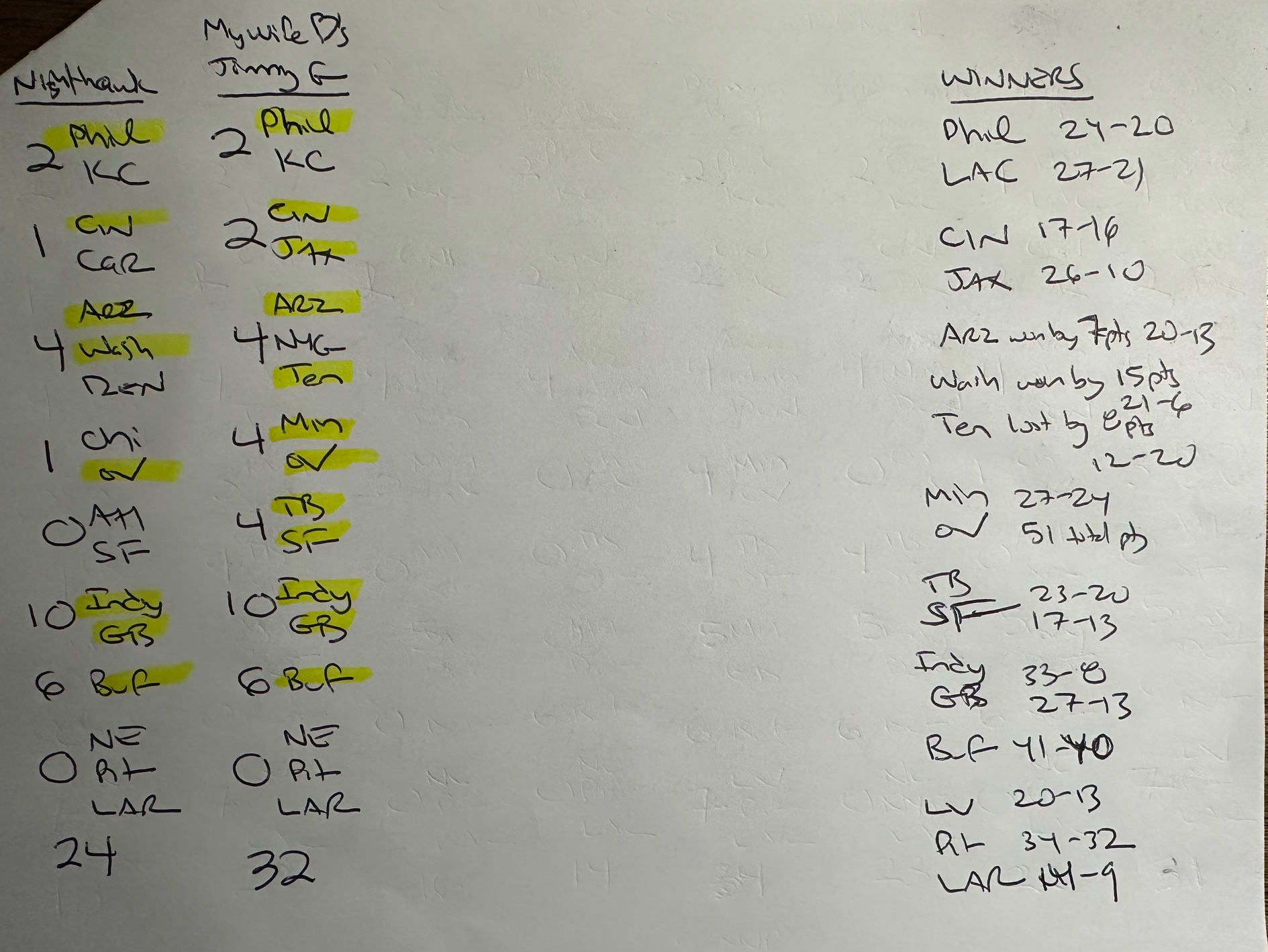 Most Games of the Week- My Wife Loves Jimmy G & Mr. T (23 out of 37 – 62% correct)
